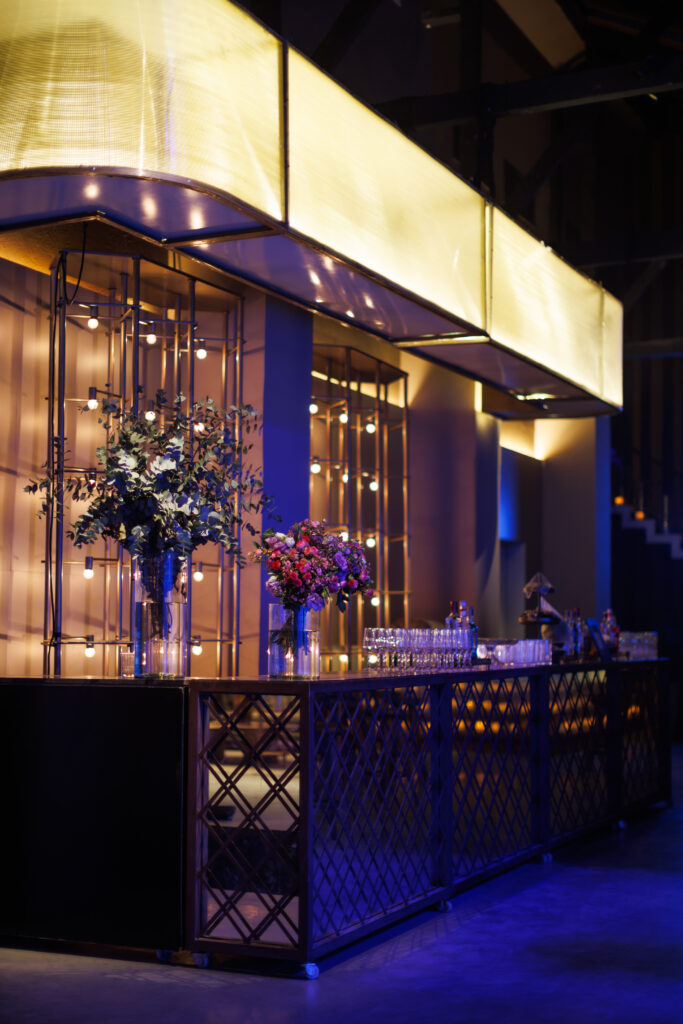 Através de lindas artes contemporâneas, você se sente cativado pela atmosfera de alto padrão do Mezanino. Aqui, os clientes podem desfrutar da alta gastronomia enquanto apreciam a vista panorâmica do espaço no andar inferior.